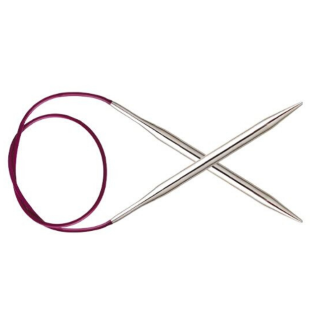 Las agujas circulares fijas de la serie NOVA METAL KNITPRO están fabricadas en acero con una conexión perfecta entre aguja y cable que evita que la fibra se enganche.