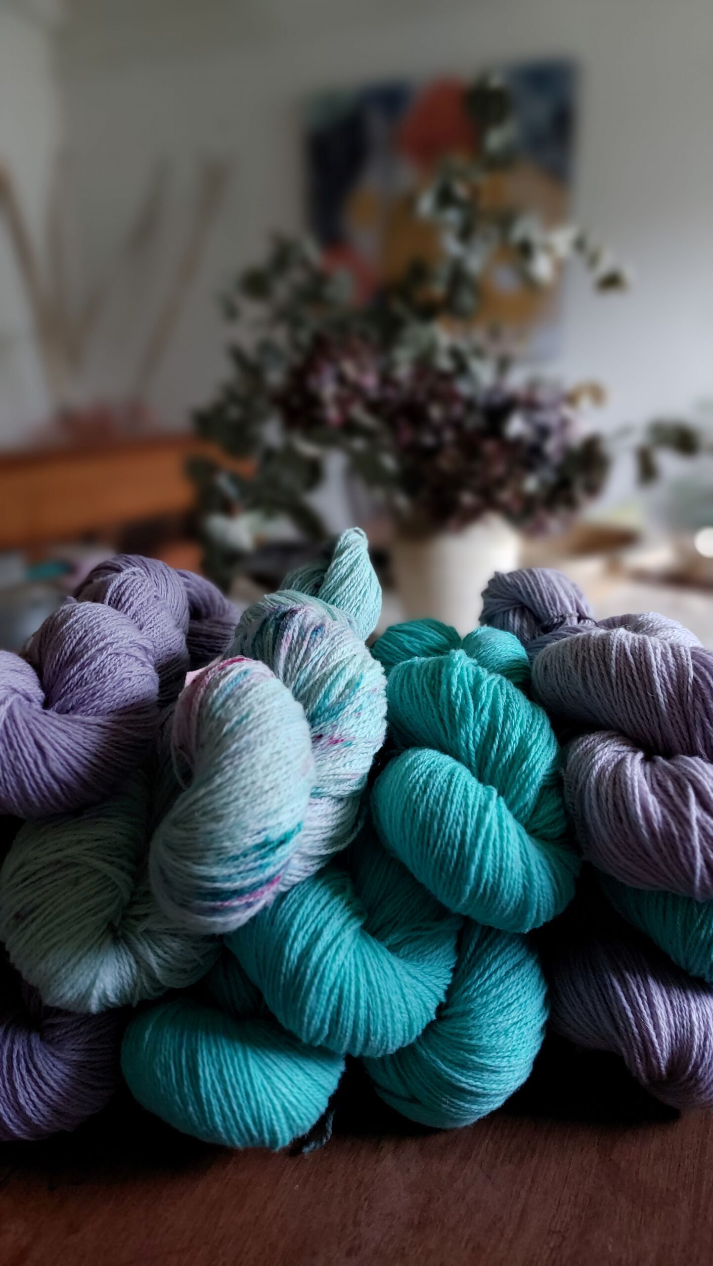 Las madejas están teñidas de manera manual, por lo tanto puede haber alguna pequeña variación entre una madeja y otra. Es recomendable intercalar madejas cada dos filas .