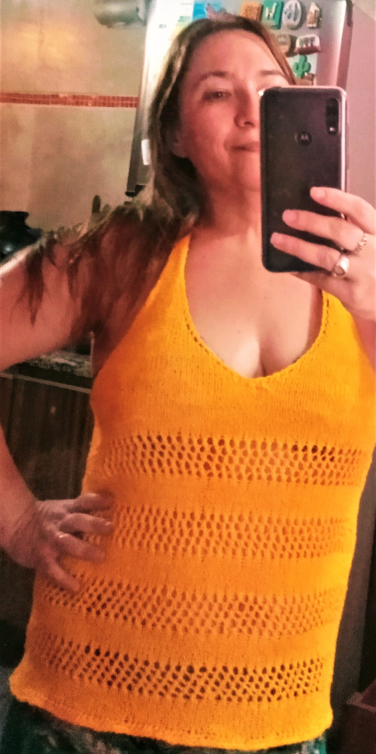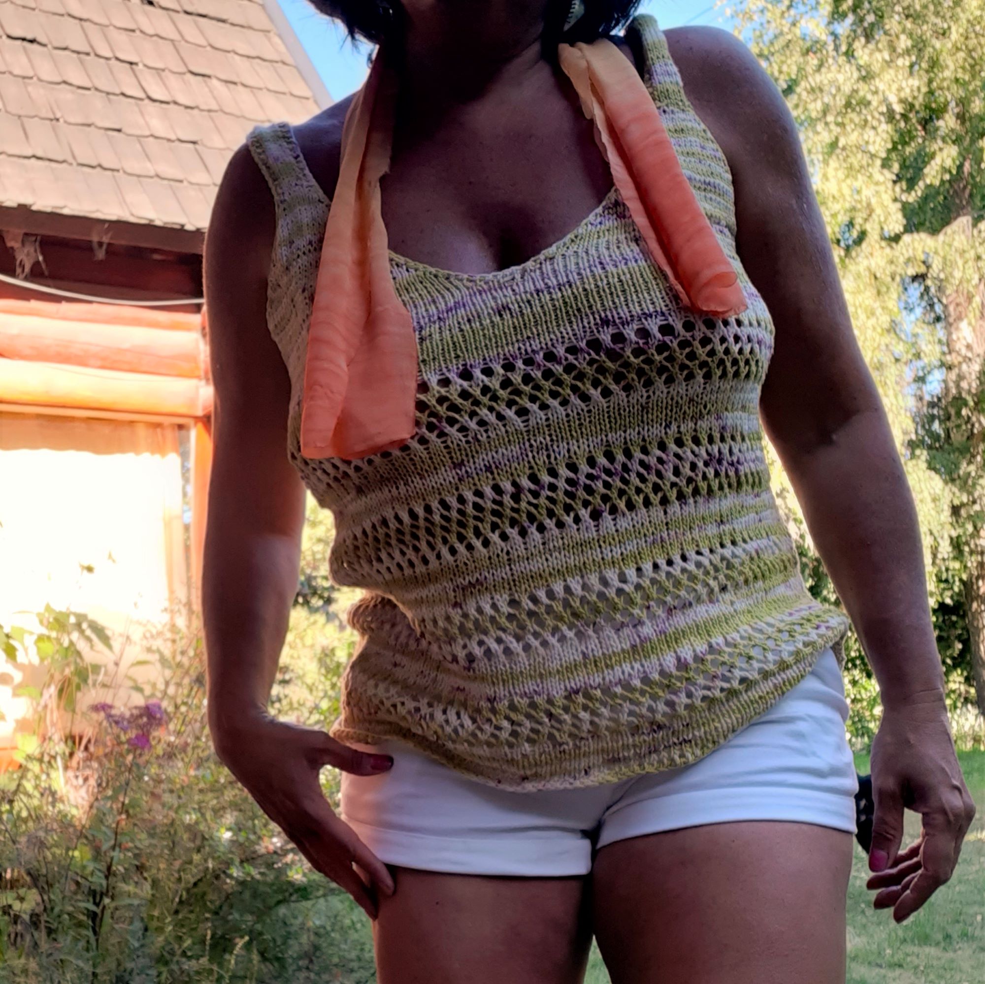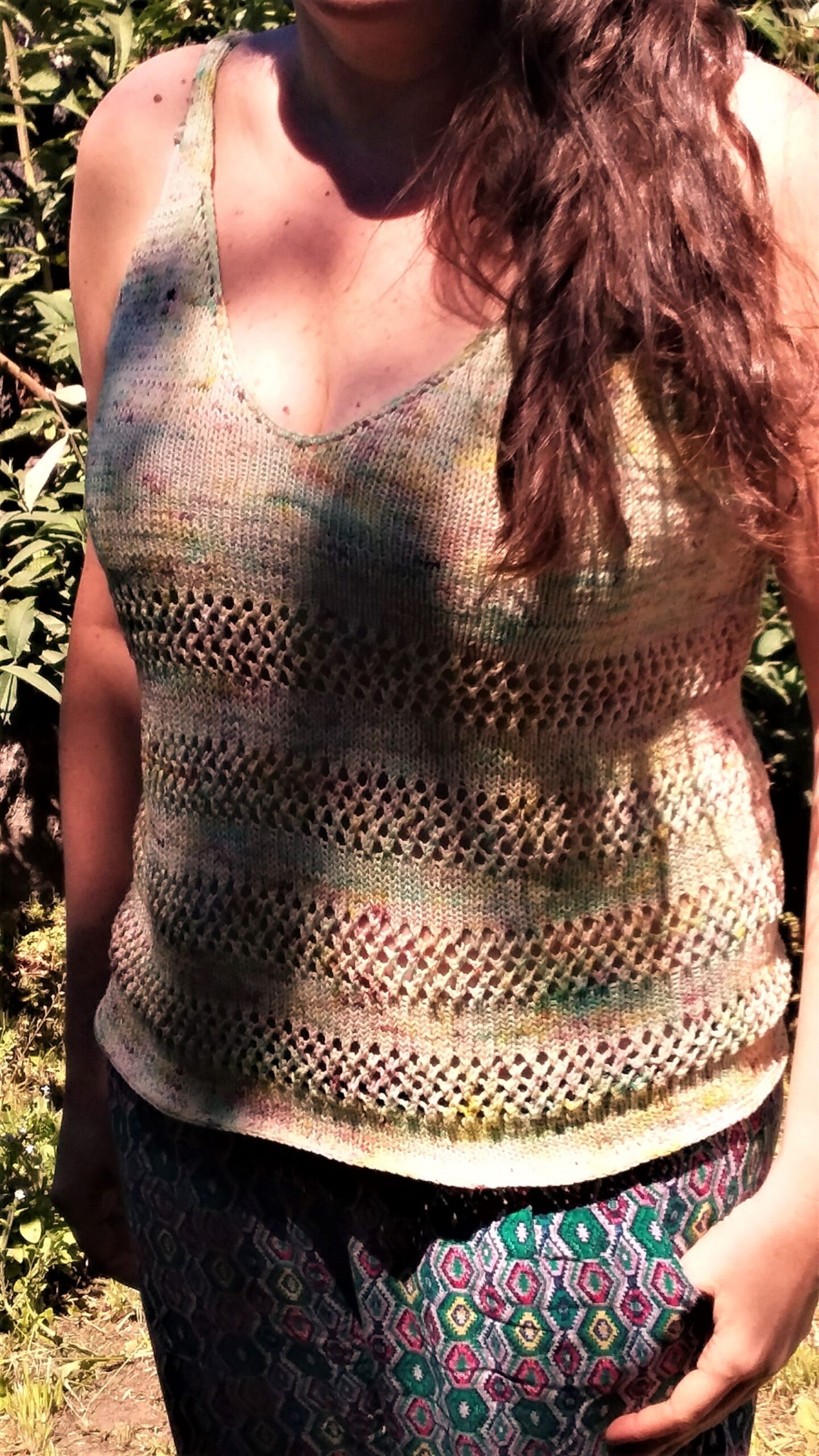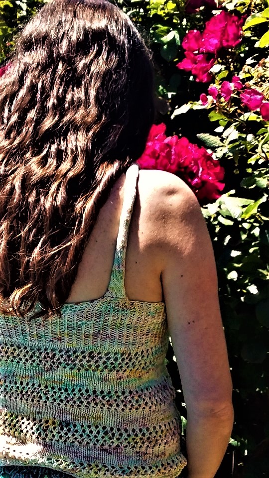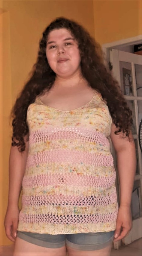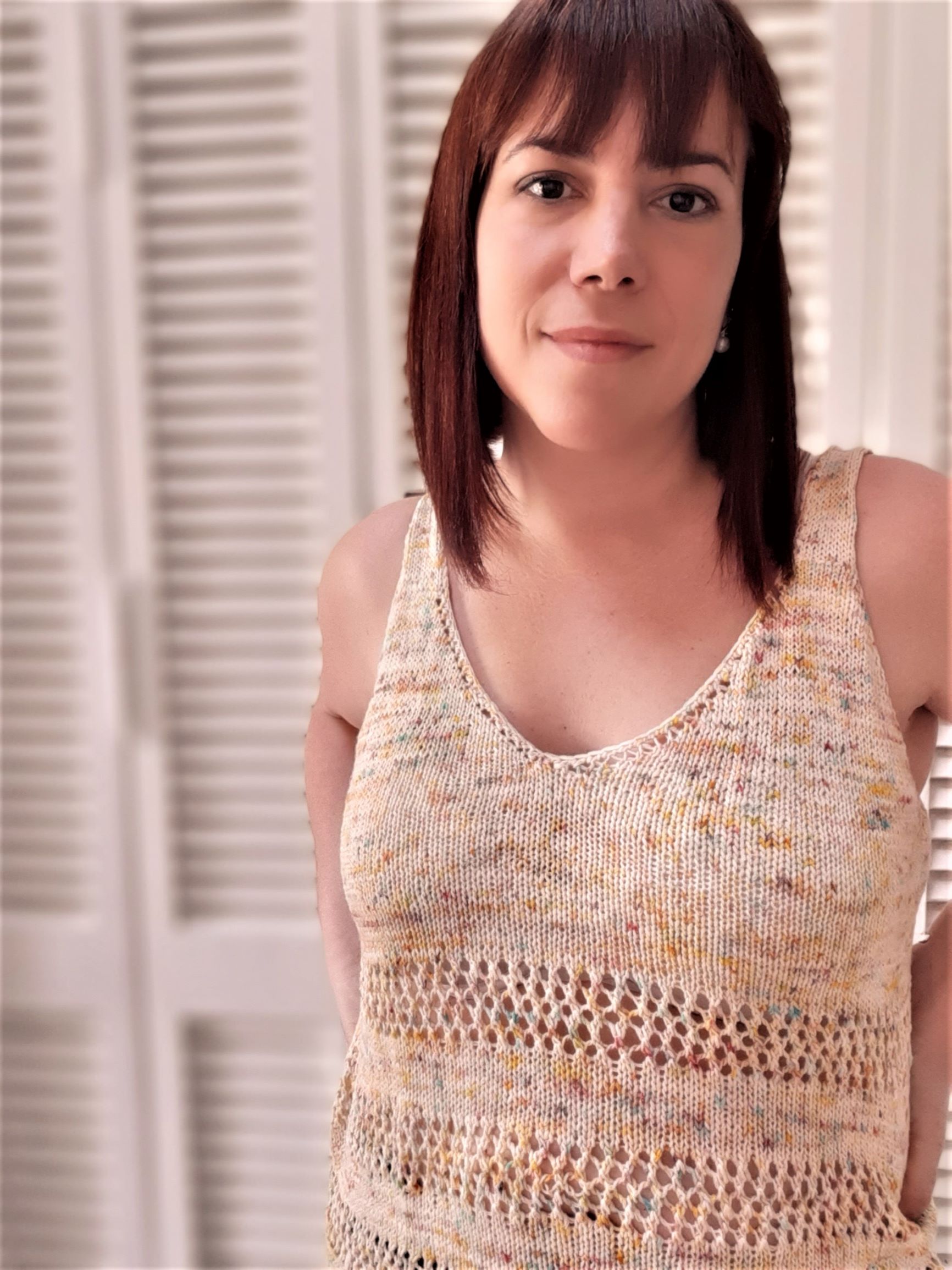 Es una musculosa muy sencilla de realizar, que se teje desde arriba hacia abajo, iniciando con cada corpiño por separado , para luego unirlos y tejer en circular asi evitamos costuras. Si nunca hiciste calados, es ideal para que comiences a practicarlo, ya que es un calado simple